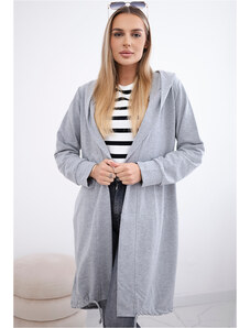 Kesi Šedý ležérní dámský asymetrický kardigan s kapucí a kapsami Šedá