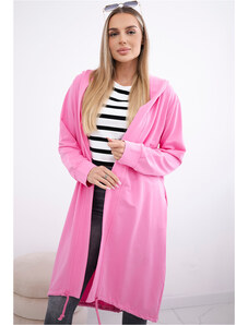 Kesi Neonově růžový ležérní dámský asymetrický kardigan s kapucí a kapsami Růžová