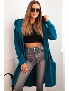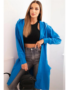 Kesi Modrý dámský ležérní kardigan s kapucí a potiskem na zádech Modrá