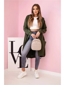Kesi Khaki ležérní dámský asymetrický kardigan s kapucí a kapsami