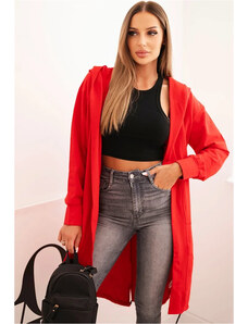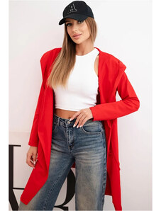 Kesi Červený ležérní dámský asymetrický kardigan s kapucí a kapsami Červená