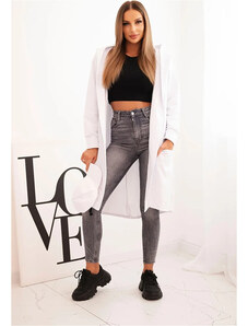 Kesi Bílý dámský asymetrický kardigan s potiskem na zádech Bílá