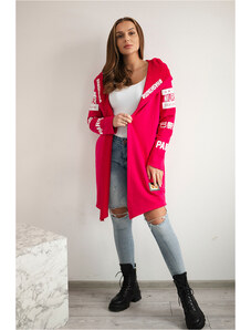 Kesi Tmavě růžový dámský kardigan s nápisy a kapucí Tmavě růžová