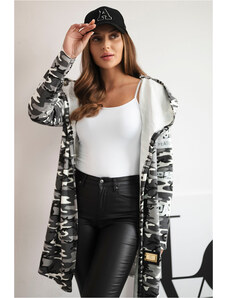 Kesi Šedý dámský maskáčový kardigan s nápisy a kapucí Šedá