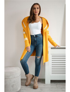 Kesi Hořčicový dámský kardigan s nápisy a kapucí Hořčicová