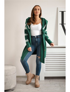 Kesi Smaragdový dámský kardigan s nápisy a kapucí Smaragdová