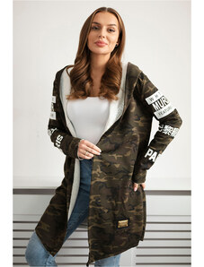 Kesi Maskáčový dámský kardigan s nápisy a kapucí Maskáčová