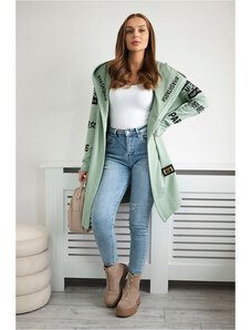 Kesi Mátový dámský kardigan s nápisy a kapucí Mint