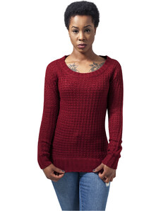 Urban Classics Dámský svetr s dlouhým širokým výstřihem vínové barvy
