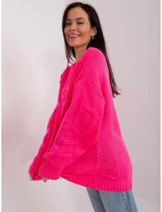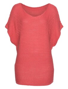 ITALY MODA Červený dámský oversize svetr s lesklou nití -red Červená
