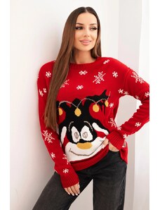 K-Fashion Vánoční svetr se sobem červený