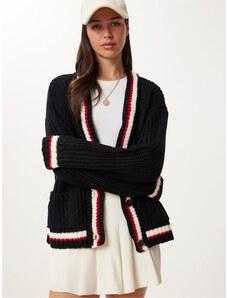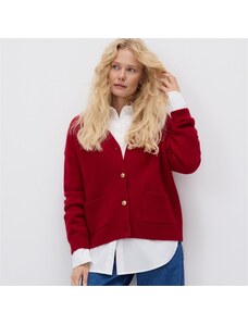 BASIC Červený svetr na knoflíky s kapsami -red Červená
