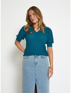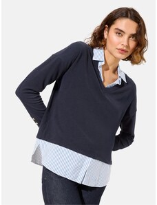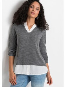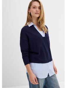 Bonprix Svetr z jemné pleteniny, s halenkovou vsadkou modrá Žena