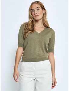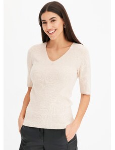 Bonprix Žebrovaný svetr s viskózou, krátký rukáv béžová Žena