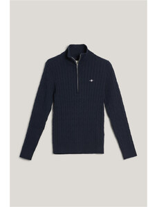 SVETR GANT STRETCH COTTON CABLE HALF-ZIP EVENING BLUE