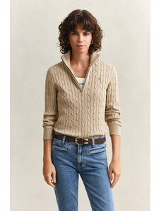 SVETR GANT STRETCH COTTON CABLE HALF-ZIP OAT BEIGE
