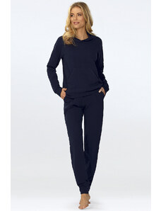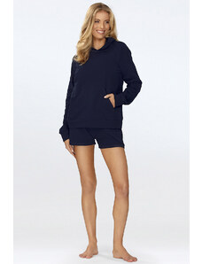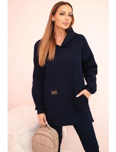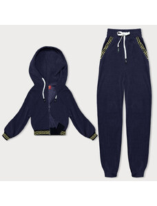 MladaModa Tepláková souprava s kapucí a širokým pasem model 9323 námořnická modrá