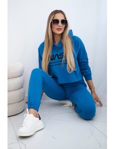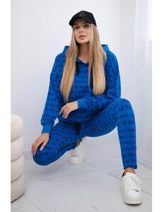 MladaModa Tepláková souprava s kapucí a nápisy model 1D královská modrá