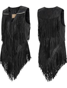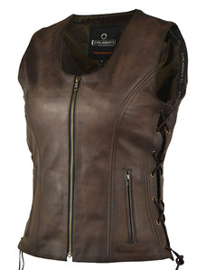 CRUISON LADY FUSION - dámská černá kožená vesta se šněrováním - 2XL