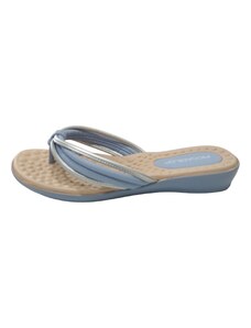 Světle modré, plážové dámské žabky na klínu