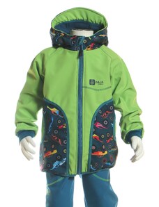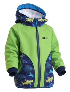 BajaDesign softshellová bunda pro kluky, zelená, žraloci na modré