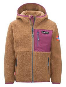 Trollkids Dětská bunda Aurlandsfjord fleecová bunda s kapucí bez zipu hnědá (466-823)