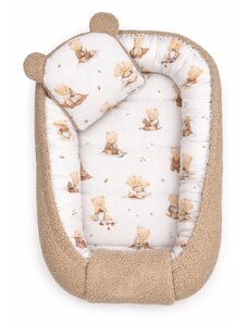Baby Nellys Oboustranné hnízdečko s polštářkem, boucle, 50x80 cm, Kouzelný Méďa, hnědý