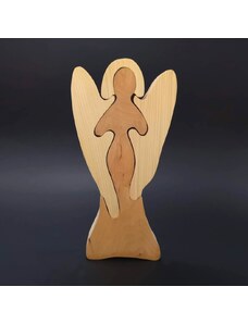 AMADEA Dřevěné puzzle anděl, masivní dřevo dvou druhů dřevin, 25 cm