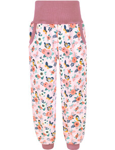 V-Mart, SLIM dívčí softshellové kalhoty Růžové květy (s fleecem)
