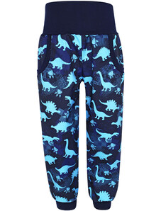 V-Mart, SLIM softshellové kalhoty Dinosauři - modří (s fleecem)