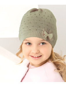 AJS Háčkovaná čepička s kamínky Mašlička, šedá
