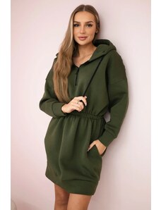 Kesi Zateplené šaty s kapucí v khaki barvě