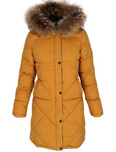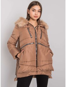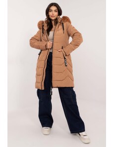 MladaModa Midi prošívaná zimní bunda s kapucí a kožešinkou model 40804 barva camel