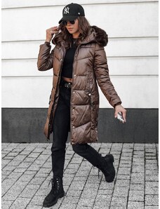Kurtka damska pikowana z futerkiem brązowa Dstreet
