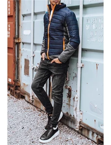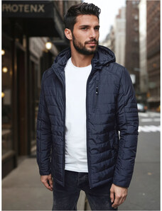 Dstreet Trendy lesklá prošívaná tmavě modrá pánská bunda