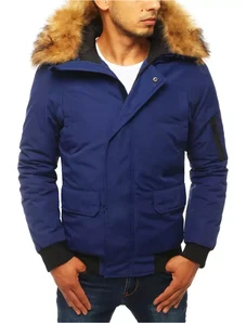 Dstreet Zajímavá tmavě modrá zimní bunda s kapucí