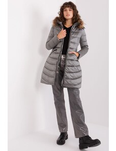 MladaModa Prošívaná zimní bunda s kapucí a kožešinkou model 12599 grafitová
