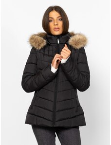 BASIC Černá dámská zimní prošívaná bunda s kožešinovou kapucí