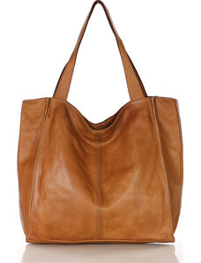 MARCO MAZZINI Camel kožená shopper kabelka Hnědá