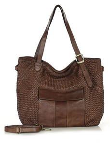 MARCO MAZZINI Velká hnědá tkaná kabelka