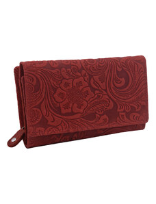 Dámská kožená peněženka Ekavale červená. Ražený květinový vzor na povrchu peněženky. Velká dělená přihrádka na mince uzavíratelná na zip. Praktická velikost peněženky se spoustou přihrádek. Kvalitní přírodní kůže a precizní zpracování. Tato peněženka je dostupná ve více barvách které naleznete ZDE .