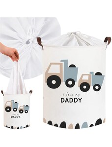 SIPO Koš na hračky, uzavíratelný, bavlna, Trucks Love Daddy - bílý, 43 L