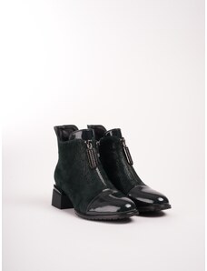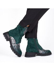 Dámské zelené kotníkové boty s hadím efektem z broušené kůže Epica