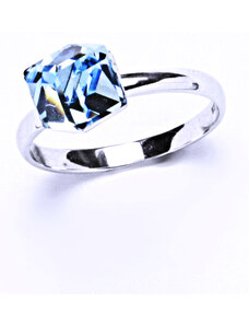 Čištín s.r.o. T 1230 stříbrný prsten s krystalem Swarovski ( Akvamarin 6x6 mm)