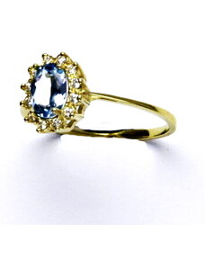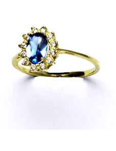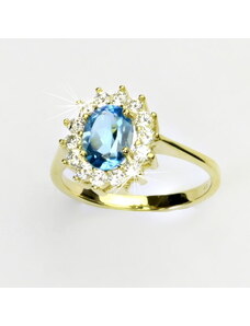 Čištín s.r.o. Zlatý prsten Kate, žluté i bílé zlato, syntetický akvamarin tmavý, čiré zirkony - T 1480