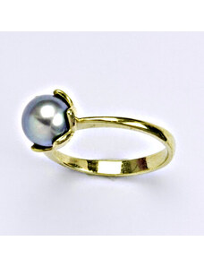 Čištín s.r.o. Zlatý prsten s přírodní šedou perlou 8 mm,žluté i bílé zlato, T 1351 v.v