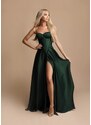 Eva & Lola Saténové šaty s korzetem EMMA tmavě zelená