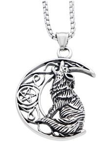 Ewena Přívěsek ocelový Vlk vyje na měsíc s řetízkem KB622