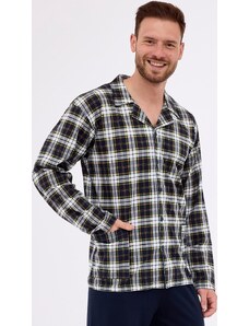 Černé kárované pánské pyžamo Cornette Černá