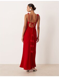 For Love & Lemons satin corsage detail cami maxi dress in red